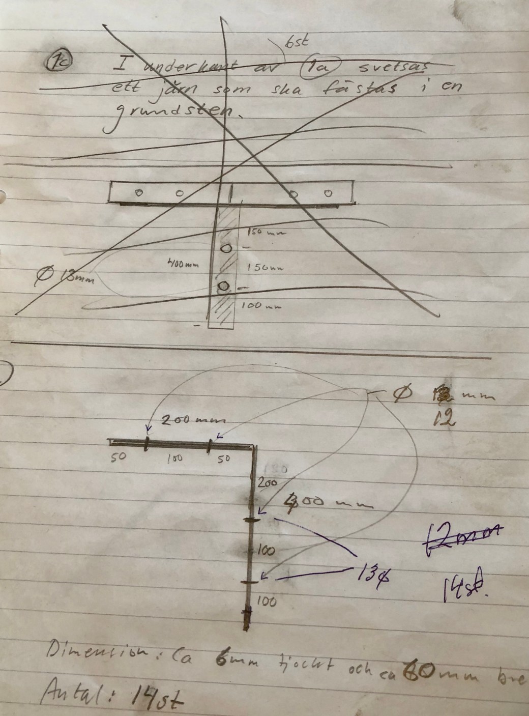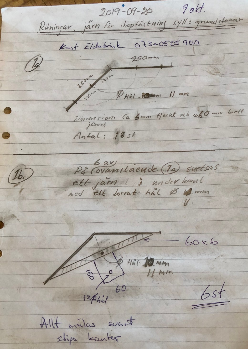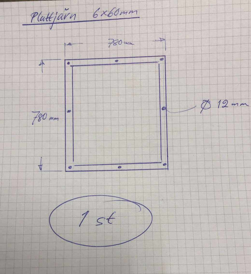 Jag har låtit tillverka egna järn för att binda ihop syllstockarna med varandra och med grundstenarna. På bilderna och filmen ser ni de proffsiga ritningarna som Henrikssons Smide i Kalix fick som underlag😃👍👌. Men resultatet blev bra!