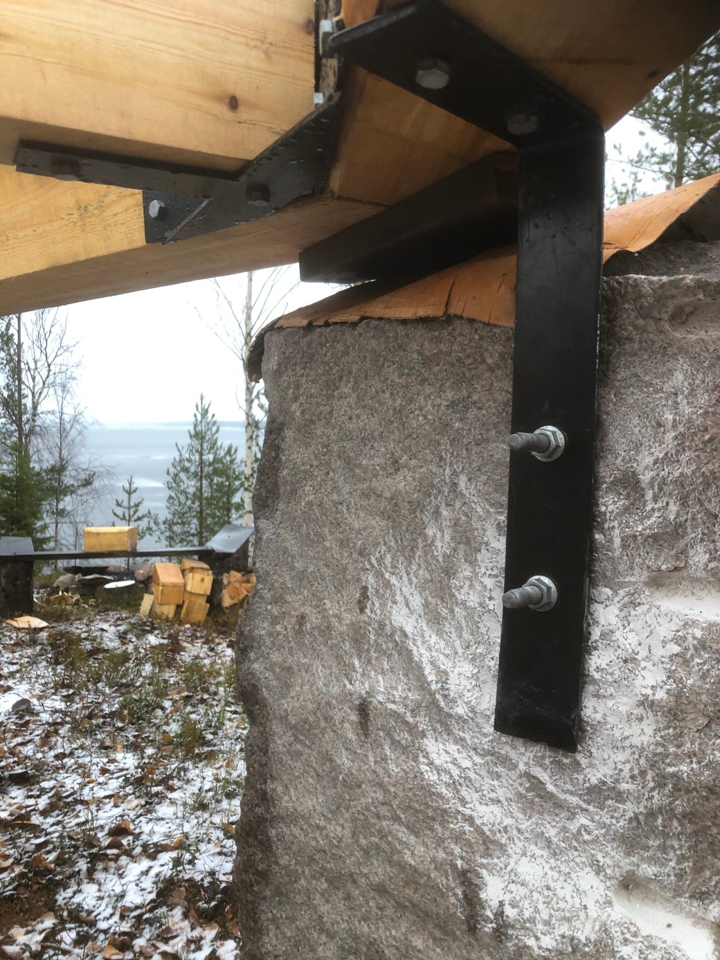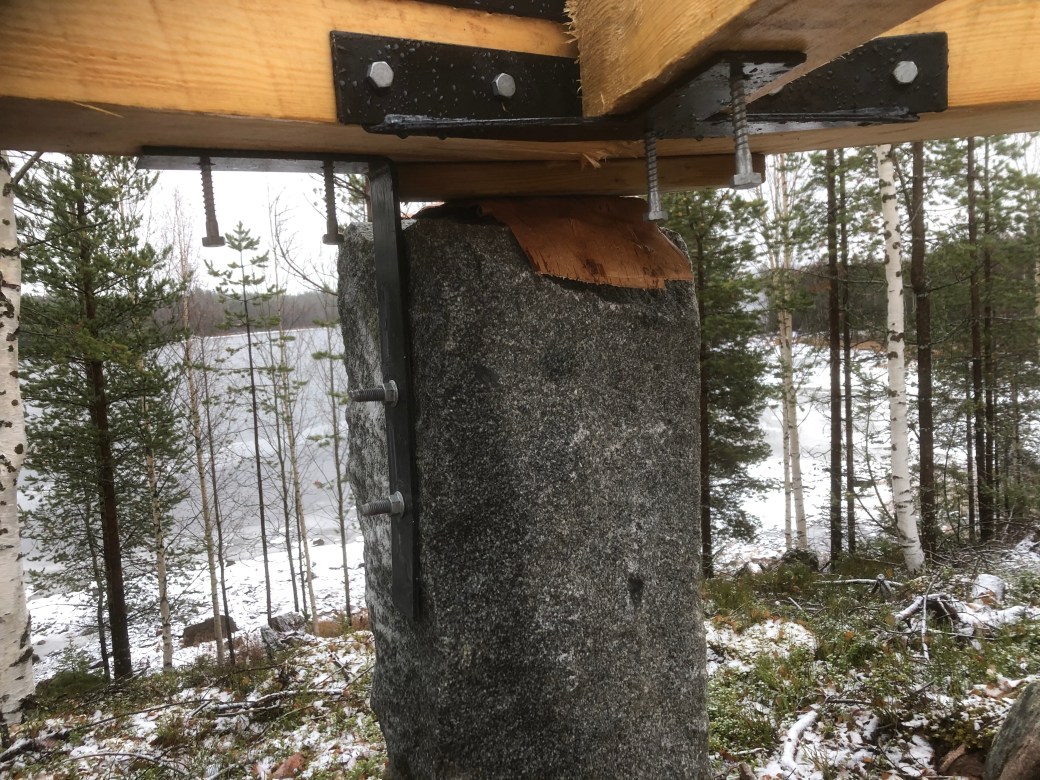 Idag har jag skruvat ihop syllstockarna med varandra och grundstenarna. Det är totalt 24 stockar och det gick åt totalt 112 franska skruvar och 22 expanderbultar. Det betyder att arbetet i år är nu är klart!👍