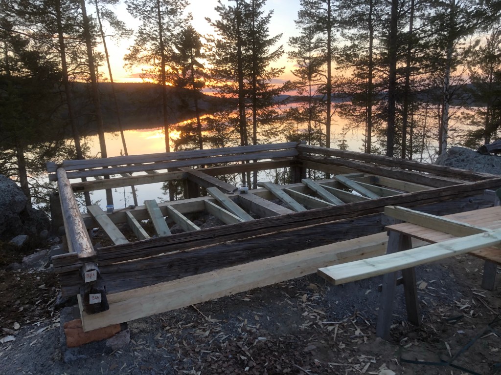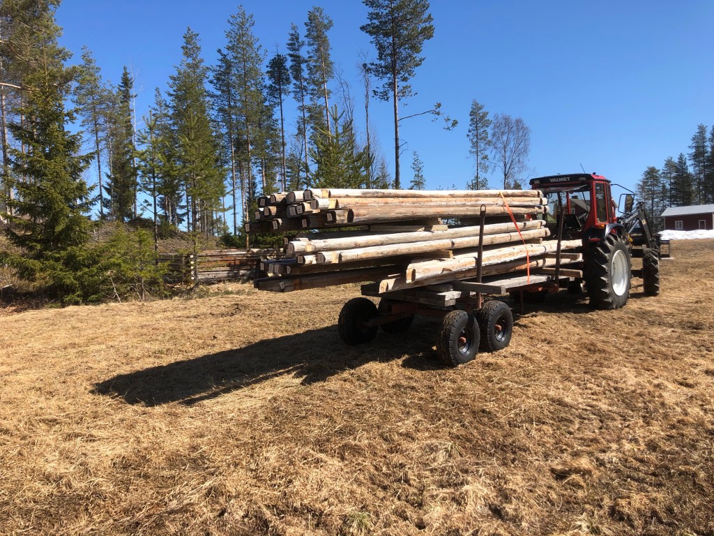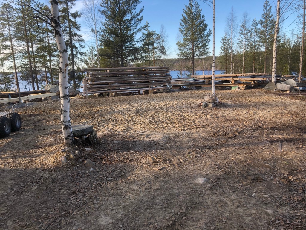 Flyttningen avklarad och material till golv och altan inköpt och hemtransporterat. Så nu är det bara bygga upp ladan och så småningom inreda den till bastu. Men i början får den nog enbart tjäna som arbetsbod.