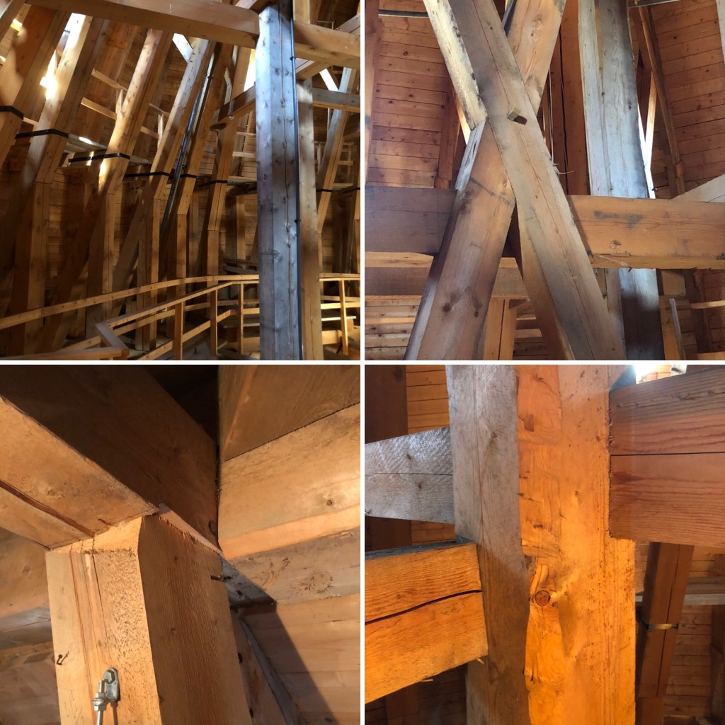 Den 23/3 träffades vi vid ingången till den vackra och imponerande kyrkan. Det var en fantastisk upplevelse att få studera hur de skickliga timmermännen hade återuppbyggt konstruktionen med gammal beprövad byggteknik. Bara trä. De kraftiga träbalkarna sammanfogade med ekdymlingar. Jag fick flera idéer till takkonstruktionen i mitt bygge och även löfte att återkomma när jag kommit längre med mitt bygge. Tack Allan för att du tog dig tid och visade mig ”din” fantastiska kyrka ⛪️! Och tack för den fina boken om arbetet med återuppbyggnaden🙏.