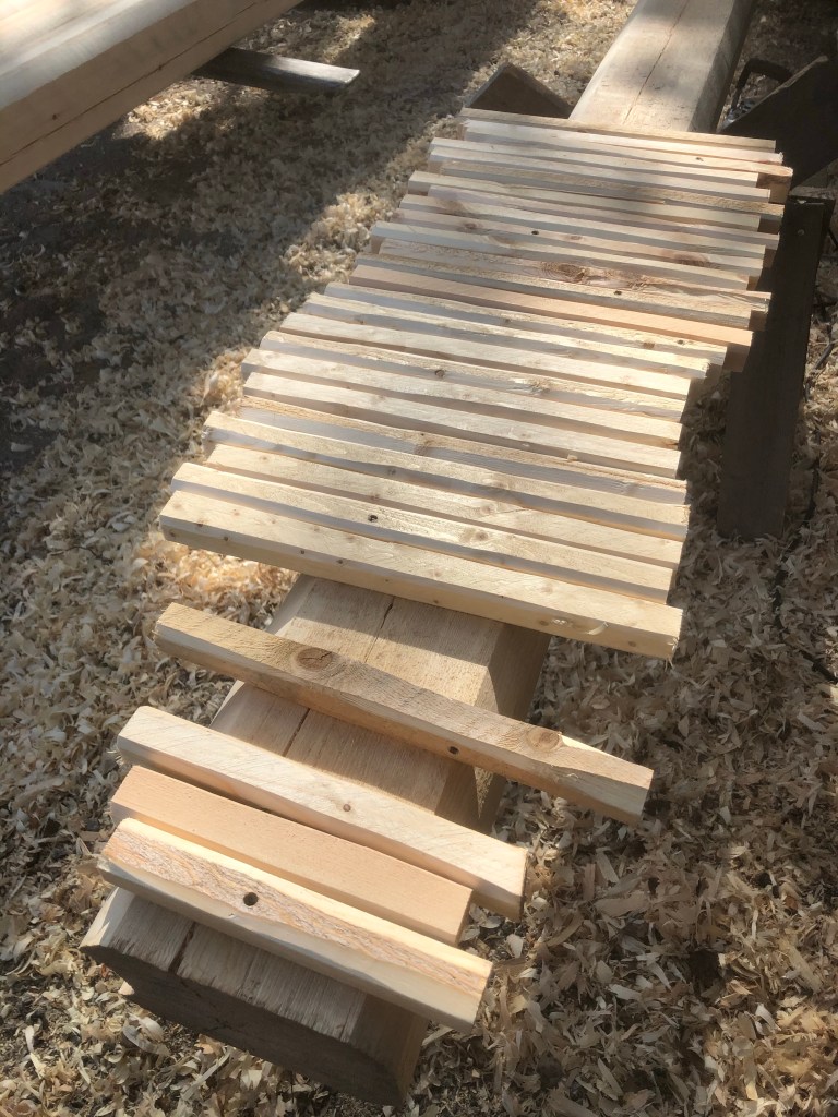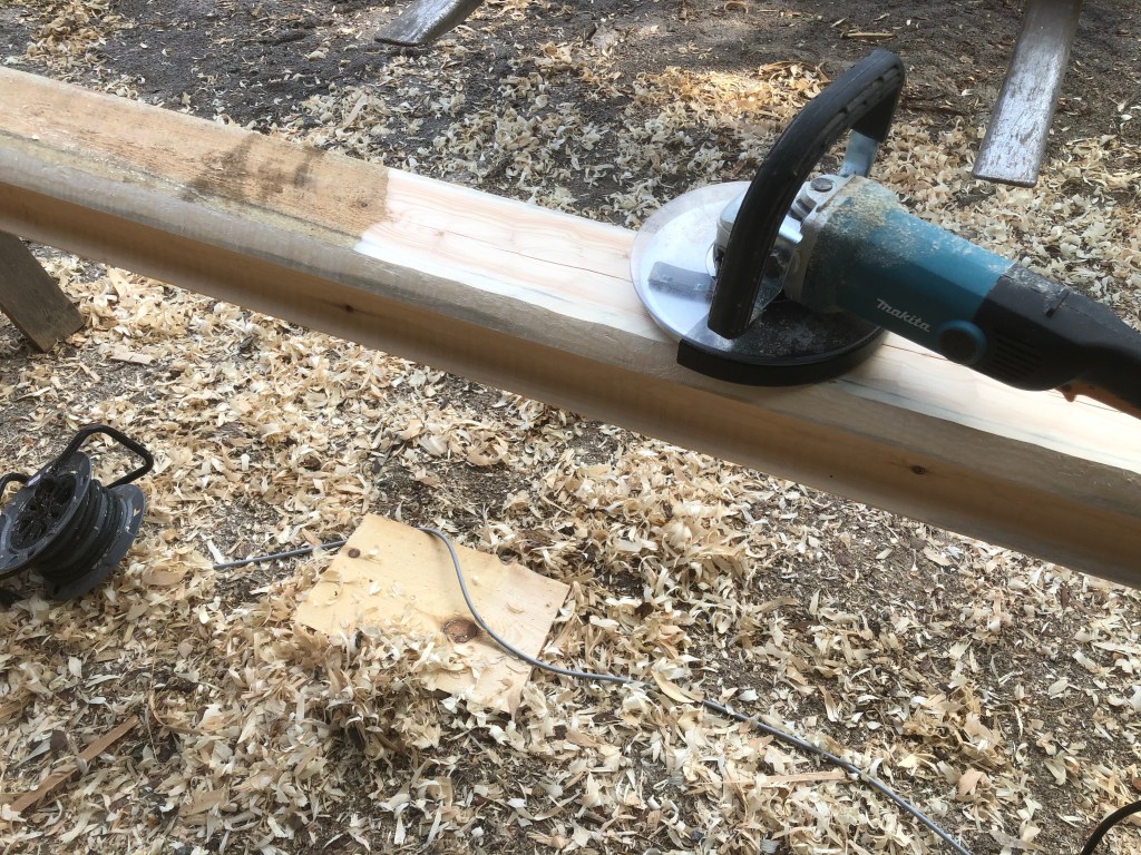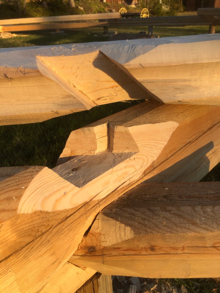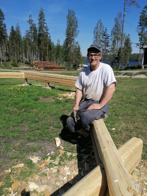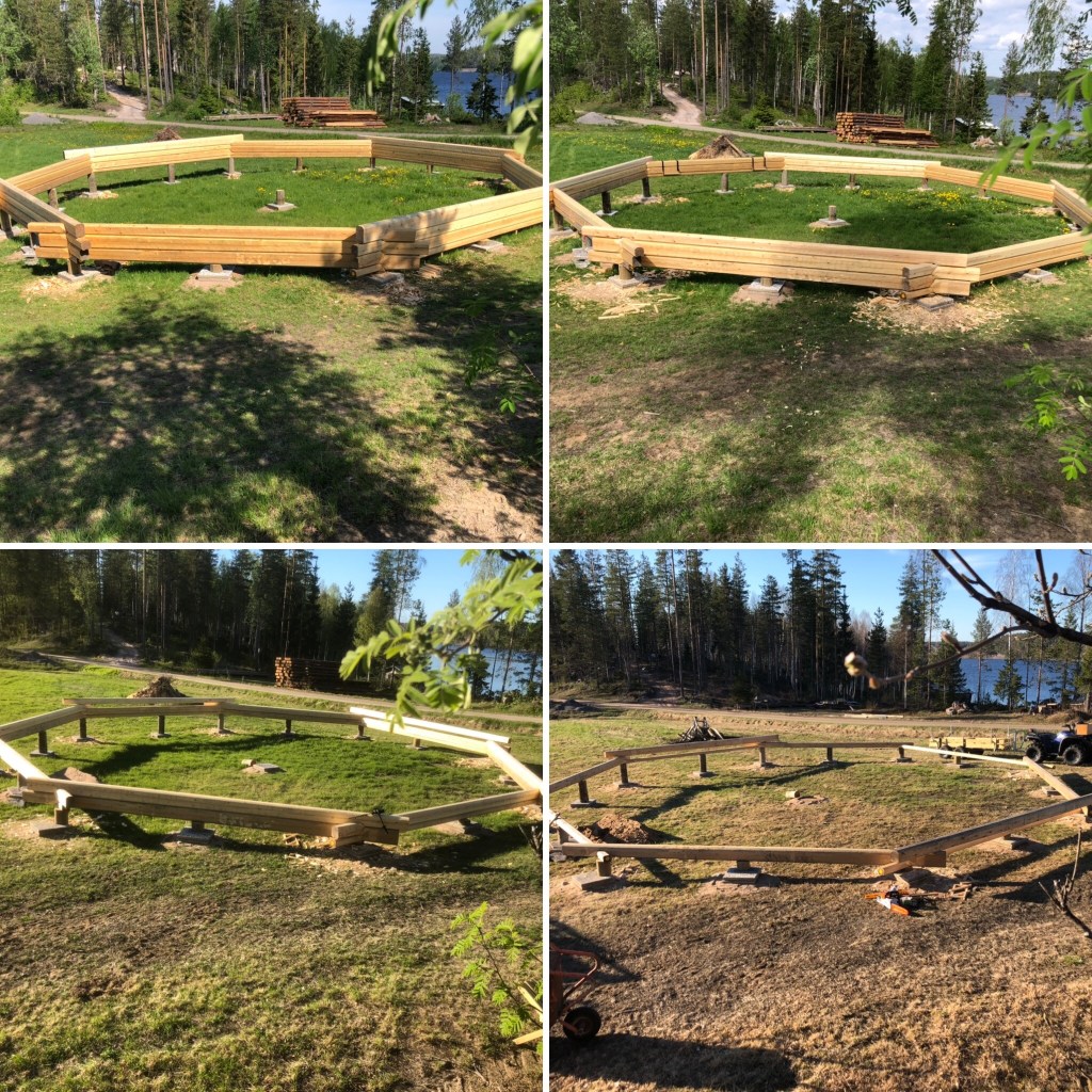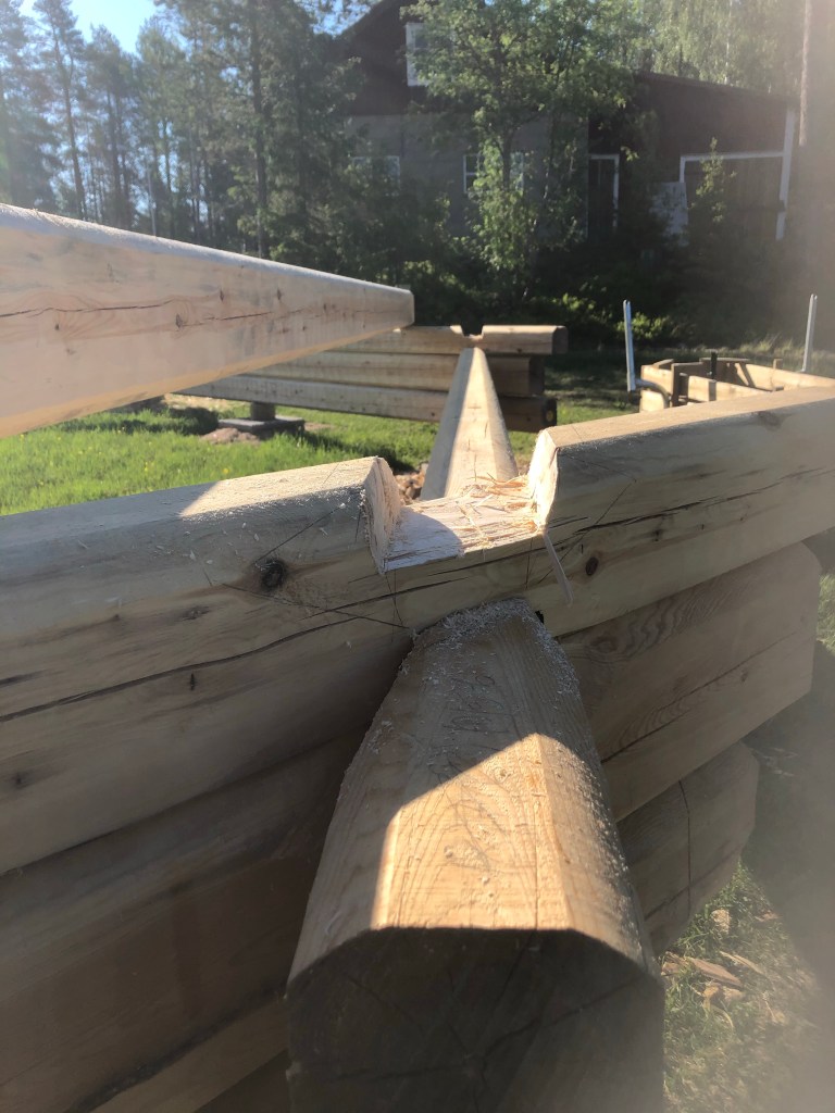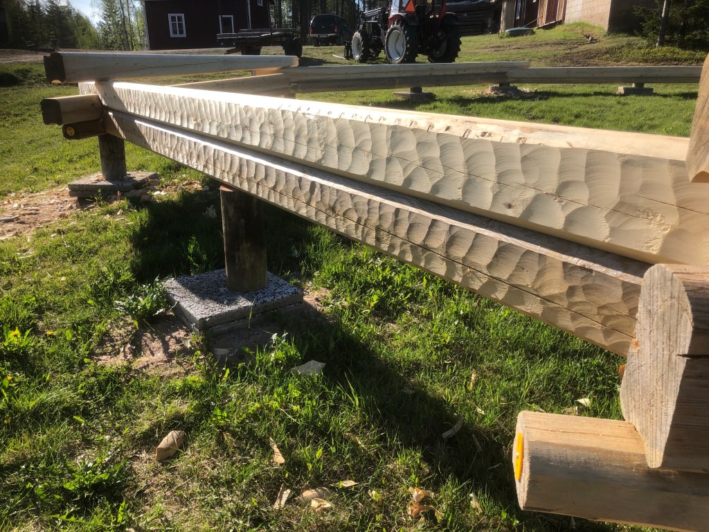 Nu Àr nÀstan hela fjÀrde stockvarvet pÄ plats. Den intensiva vÀrmen försenade arbetet nÄgot sÄ de sista stockarna i varv 4 fÄr jag lÀgga pÄ plats i början av juli.