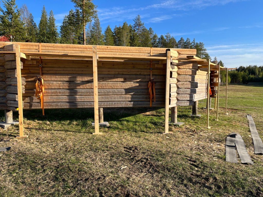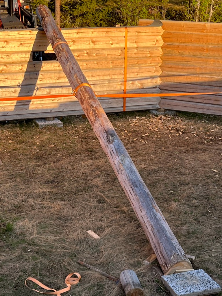 Nu har jag påbörjat timrandet igen! Ja, eller inte riktigt ännu… jag har börjat med att bygga en ställning och har lyft in centrumstolpen. I morgon hoppas jag kunna resa upp centrumstolpen och påbörja varv nr 10.
