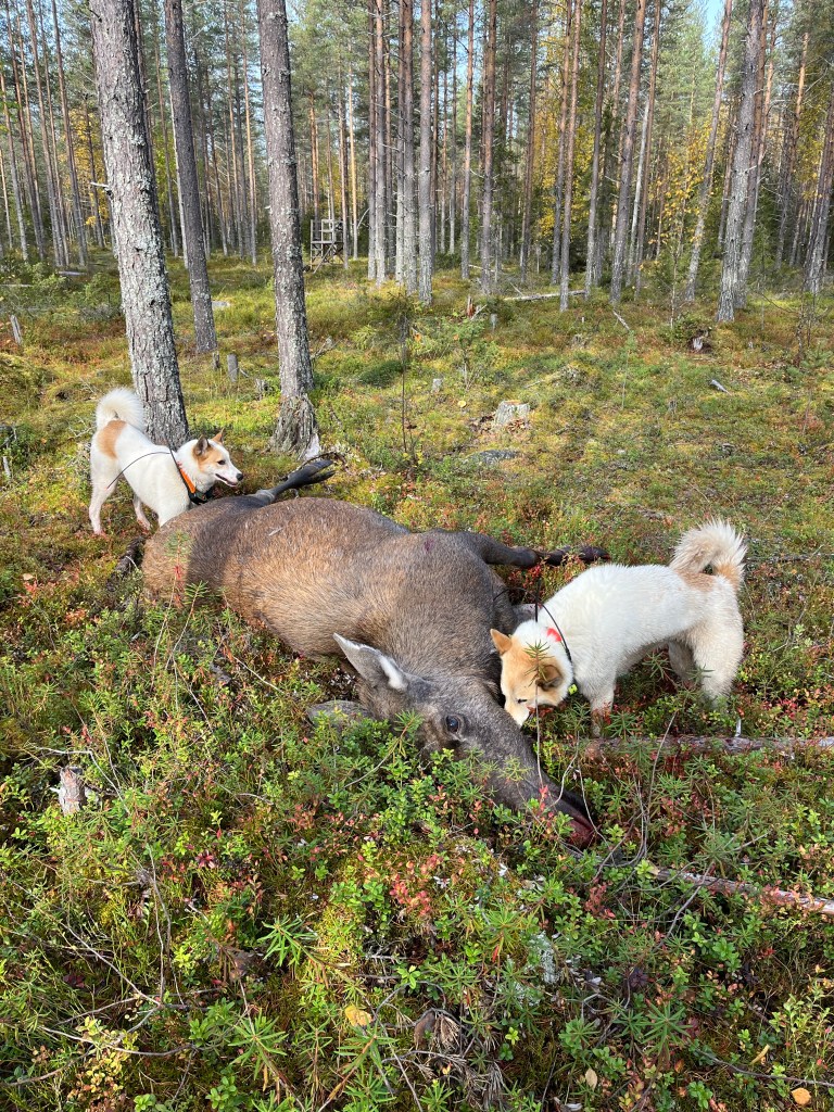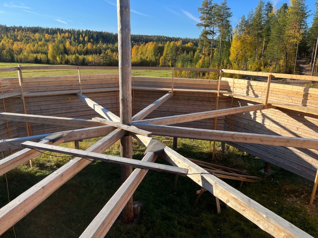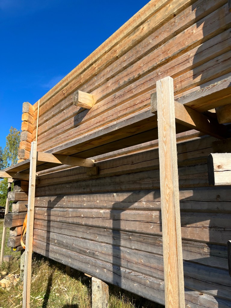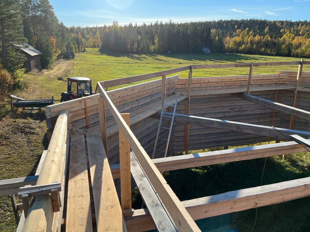 Nu är 15:e väggvarvet på plats👍. Vägghöjden är nu ca 310 cm och den blir totalt lite drygt 350 cm med 17 varv. Slutspurten när det gäller väggvarven närmar sig således med ”stormsteg”. Under september och oktober varvar jag timringsdagar med älgjaktsdagar och hoppas vara klar med väggarna i slutet av oktober. När det gäller älgjakten så lyckades jag fälla en älg igår!👍🙏