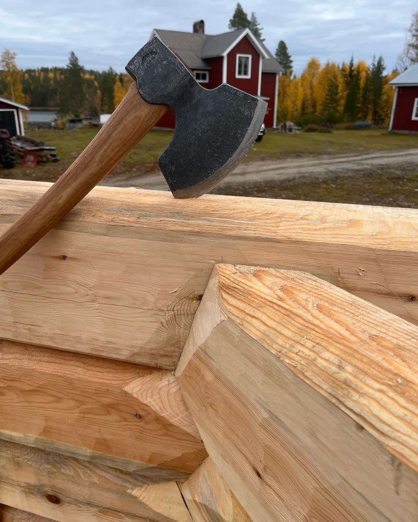 1. Tjusigt! Ser nästan läckert ut m köttyxa och biffrad….! Fin färg på timret. Jättekul att det fick så fin användning!