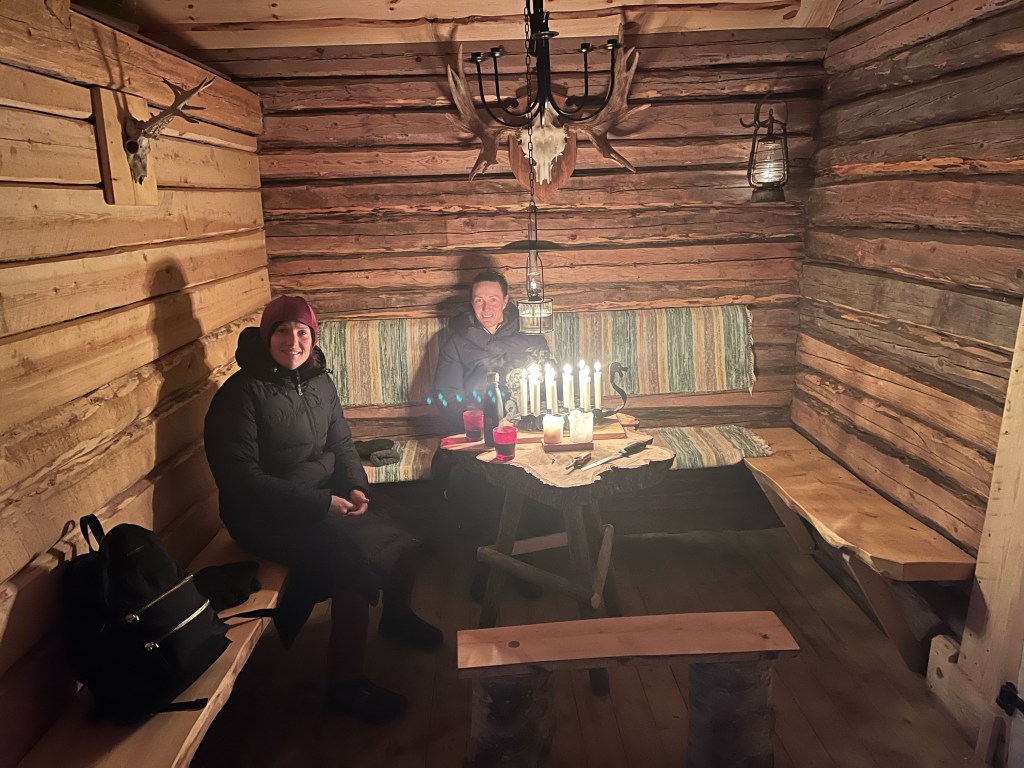 Elin och Frida har länge längtat efter att få uppleva det magiska norrskenet (solstorm). Väderprognosen visade molnigt väder i dagarna tre vilket indikerade att det var små chanser…. Men, i går kväll klarnade det plötsligt upp och himlens alla stjärnor lyste klart i den 14-gradiga kylan. När vi gick ut vid 18-tiden för att lyssna på älvens hoande när isen fryser såg vi att det började hända något på himlen… Lyckan blev total när ett fint norrsken startade upp sitt vackra skådespel👍🙏♥️.