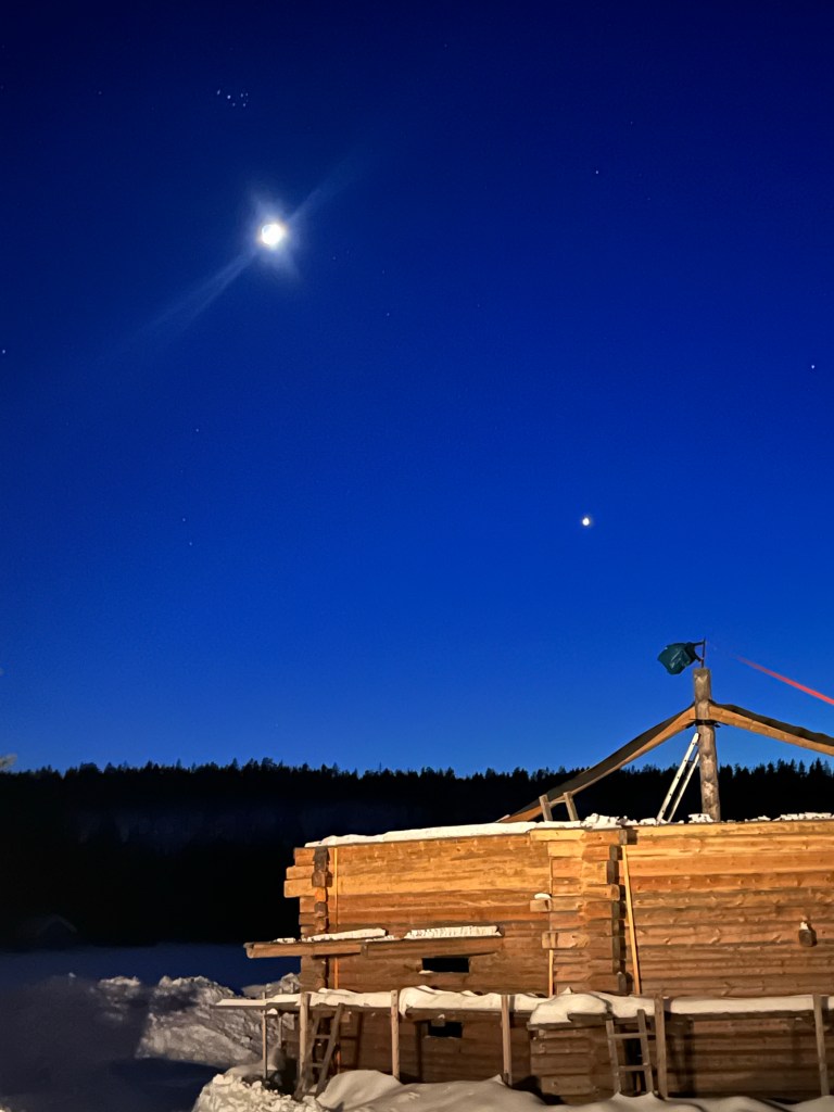 Då har jag kommit igång med tillverkning av takstolar efter att ha ägnat tre dagar åt snöskottning för att få fram stockar och såghuset ur ”snömassorna” här i Norrbotten! Snödjupet är som mest ca 115 cm. Det har varit ett fantastiskt väder som syns på bilderna. Kallt och soligt med norrsken på kvällarna….👍♥️
