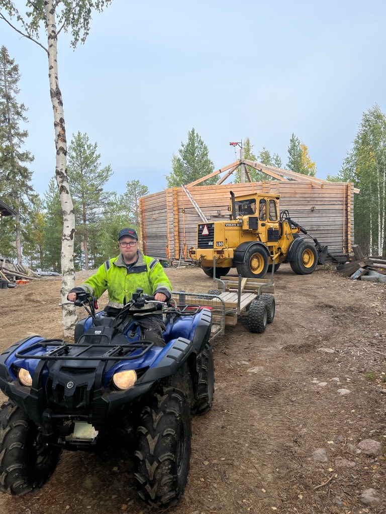 I det förra inlägget hade vi byggt upp 4 varv den 25/8 (dvs för exakt en månad sedan). Jag byggde själv upp ytterligare två varv mellan 6-9/9. Den 10/9 kom Lars-Erik Solin upp för att hjälpa till under en vecka. Det blev en intensiv arbetsvecka👍💪👌! När Lars-Erik åkte hem den 17/9 hade vi byggt upp samtliga 18 väggvarv, centrumstolpen och de 10 åsarna. Dessutom byggde vi två ställningar vartefter vi kom upp på höjd. Vi hade mycket god hjälp av Emil och Kent. Det visade sig att det optimala var att jobba med tre man, då blev teamarbetet optimalt genom att vi alla tre hade arbetsuppgifter hela tiden. Vi hade även tur med vädret under veckan. Sammanfattningsvis gick arbetet otroligt bra!