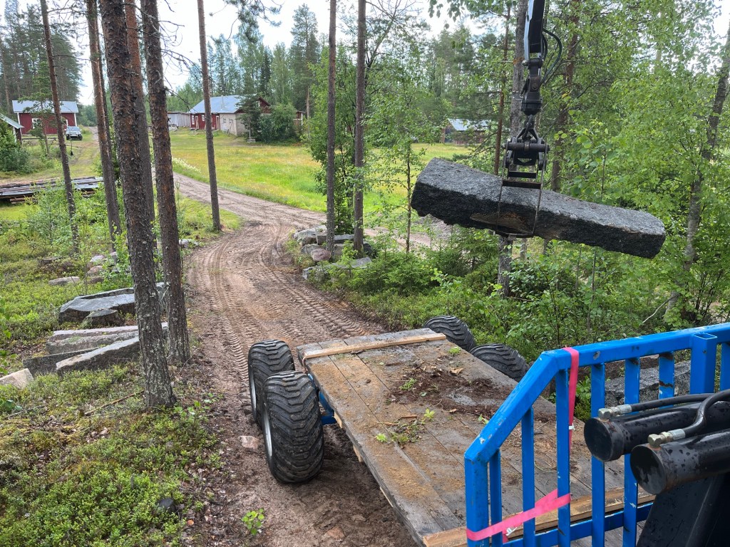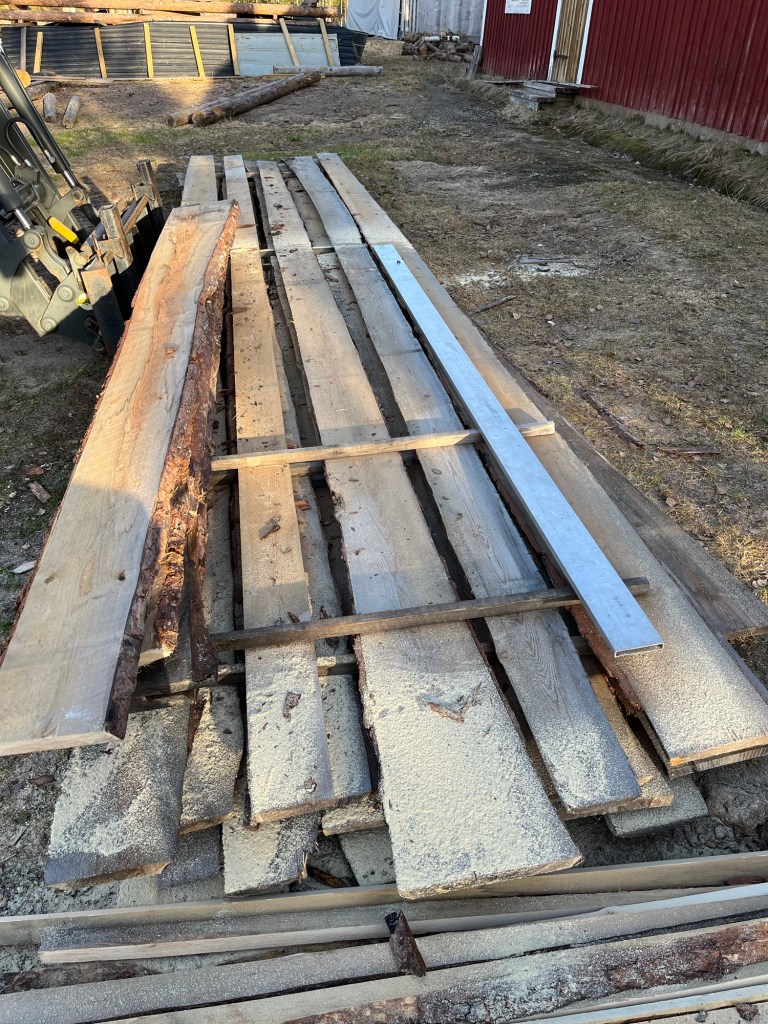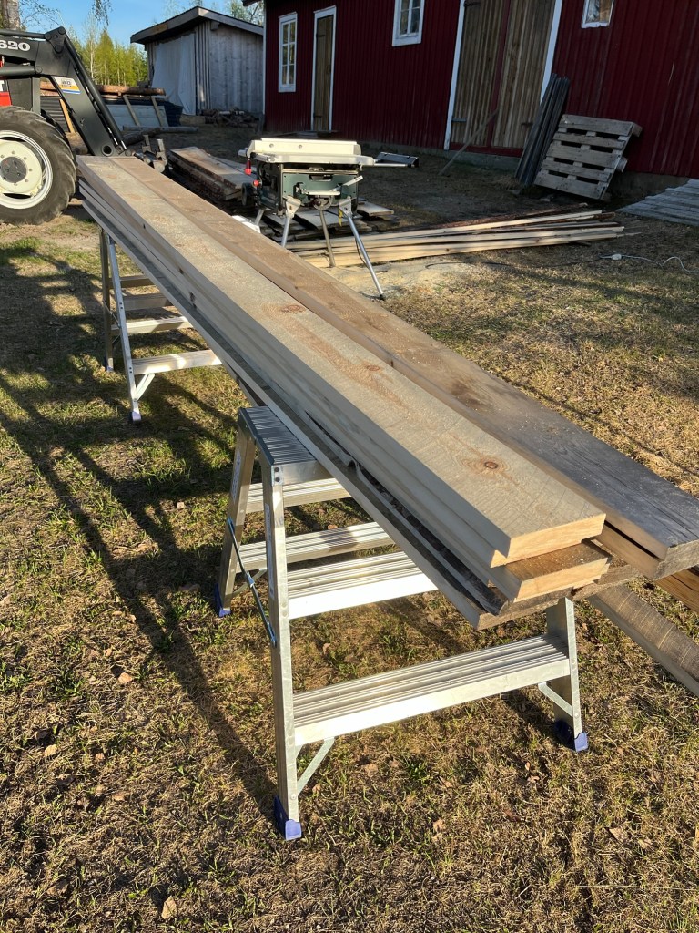 Det som jag ÀndÄ lyckats göra Àr att, med god hjÀlp frÄn Emil, Lars-Erik och brorsan Anders, montera 15 av totalt 18 golvbjÀlklag. Före ryggproblemen uppkom hann jag med att sÄga ca 300 m brÀdor för montering under golvbjÀlkarna för att hÄlla trossbottenskivorna pÄ plats. Traktorn med traktorvagnen har fÄtt jobba en del med att hÀmta och transportera huggen sten som jag köpt av à ke i en grannby. Dessa ska anvÀndas till att bygga en stödmur i ett senare skede. Se bilder.