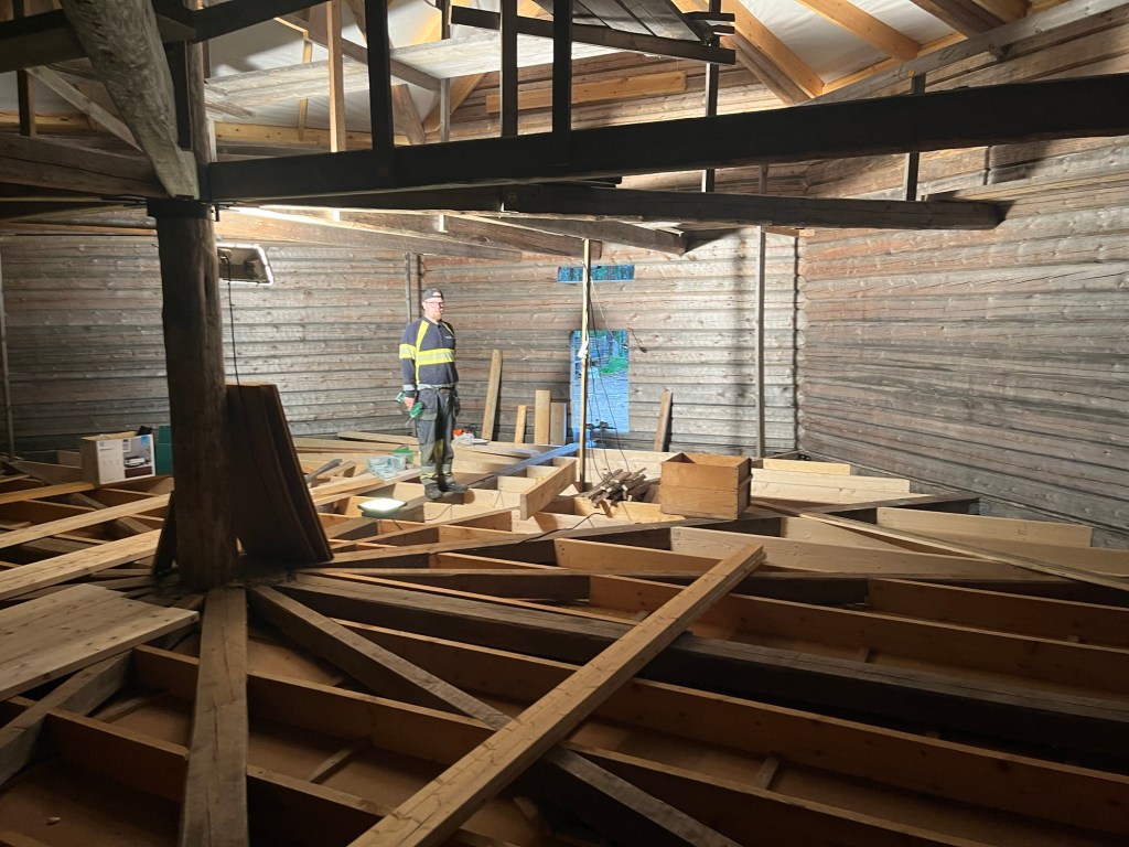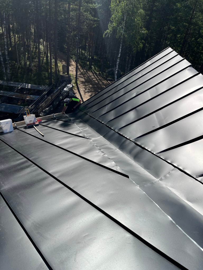 Parallellt med detta har Leif Almqvist jobbat med plåttäckningen av taket. Även detta är ju ovanligt komplicerat pga den åttakantiga konstruktionen i kombination med en gavelspets. Men det går stadigt framåt och blir väldigt fint!