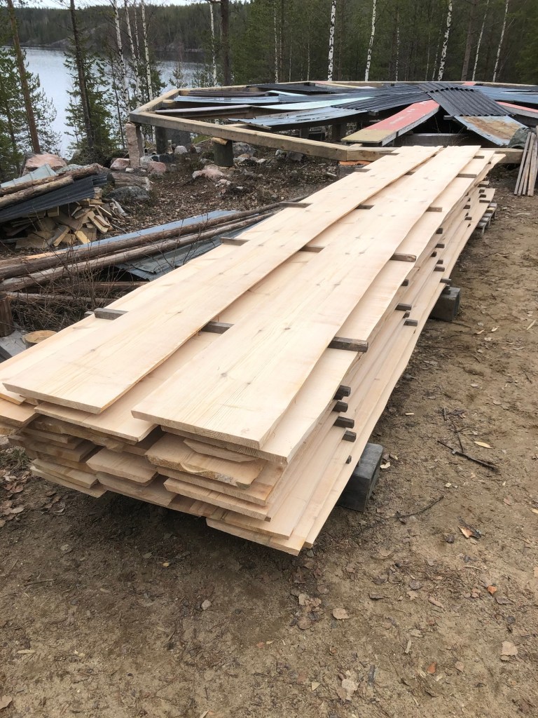 Under mars 2025 räknar jag med att såga vildmarkspanel av timret till logens innertak. Jag har sågat vildmarkspanel tidigare till bastuns innertak. Denna gång ska taket monteras stående och jag planerar även att låta hyvla den synliga sidan av panelen.