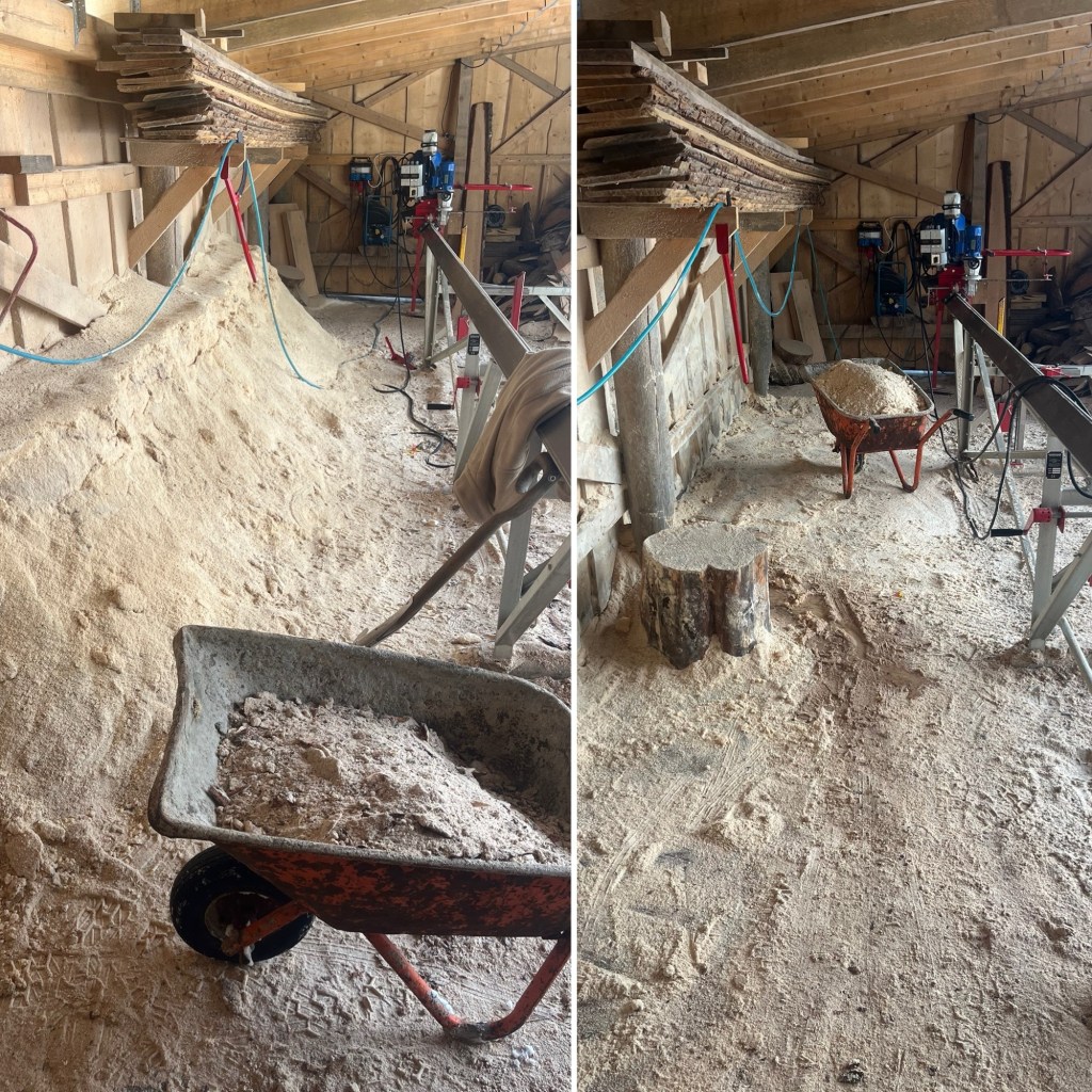 Jag tömde såghuset på spån vid två tillfällen under veckan och kärrade då ut totalt ca 60 skottkärror med spån och bark….😳. Jag har anlagt en ”kolsänka” på fastigheten genom att jämna ut en slänt med detta material istället för att elda upp det.