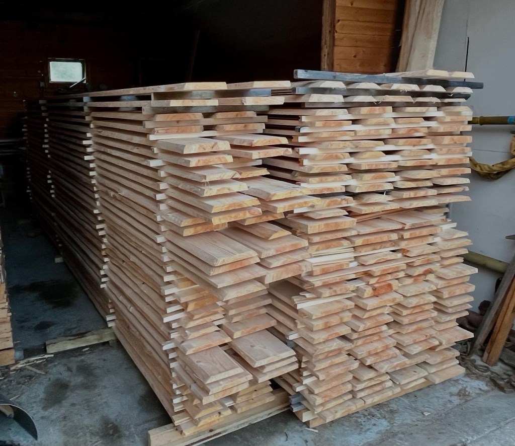 Jag har även sågat klart de sista brädorna till takpanelen. Det blev totalt 192 st. Av dessa ska 12 st användas till dörr- och fönsterfoder.