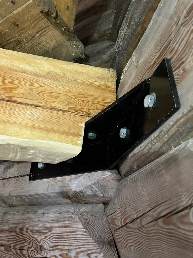 Jag har kompletterat med 18 åsar av varierande längd (mellan 0,8 och 5 m) så det är totalt 25 åsar som ska bära upp loftets golv. Dimensionen (höjd x bredd) på åsarna är ca 20 x 14,5 cm.