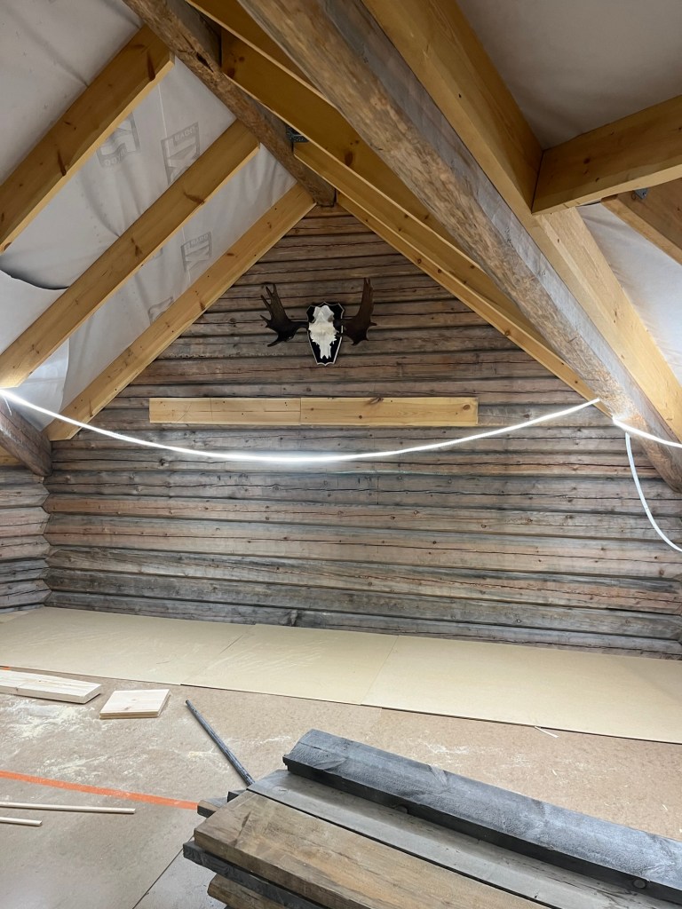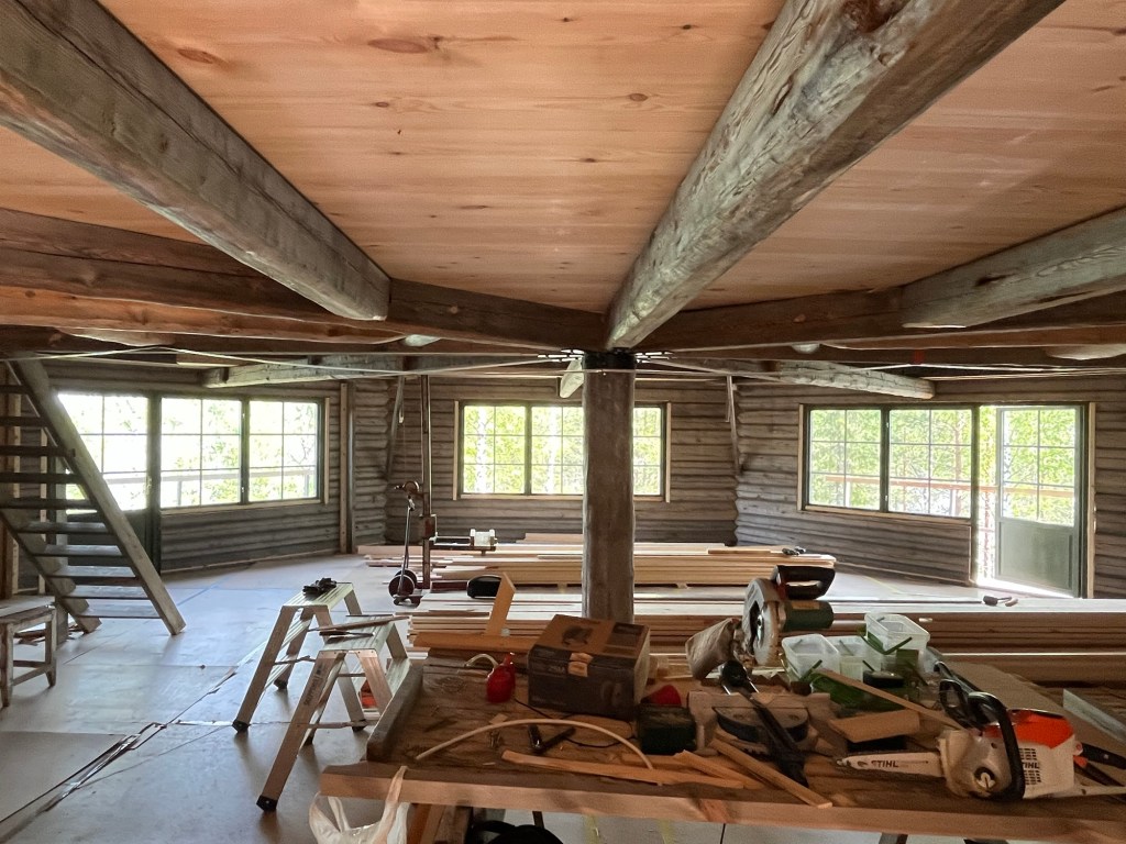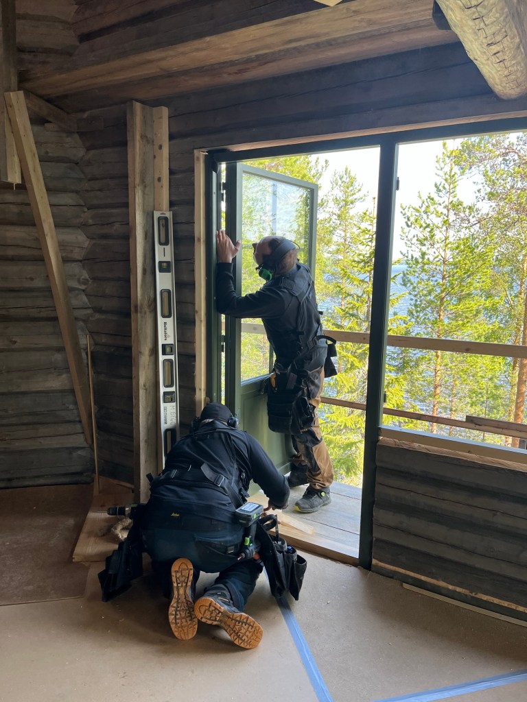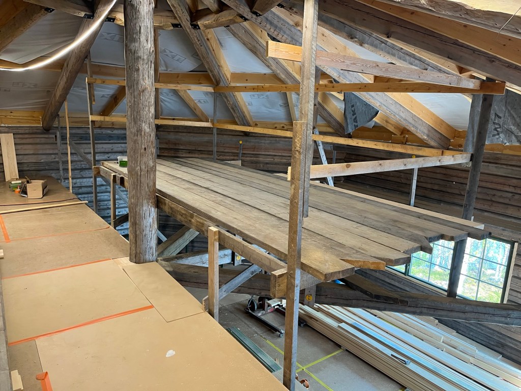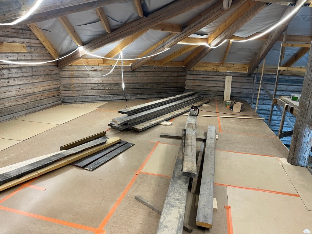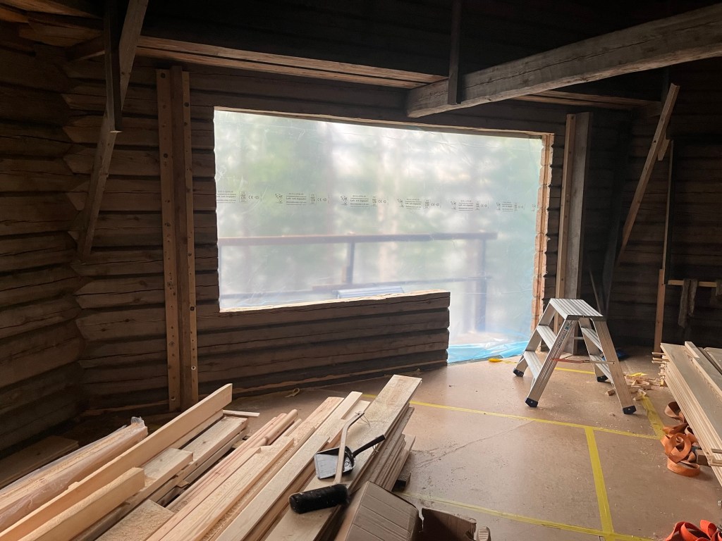 I slutet av maj och början av juni har jag haft fokus på att montera loftgolvet och två dörr- & fönstersektioner.