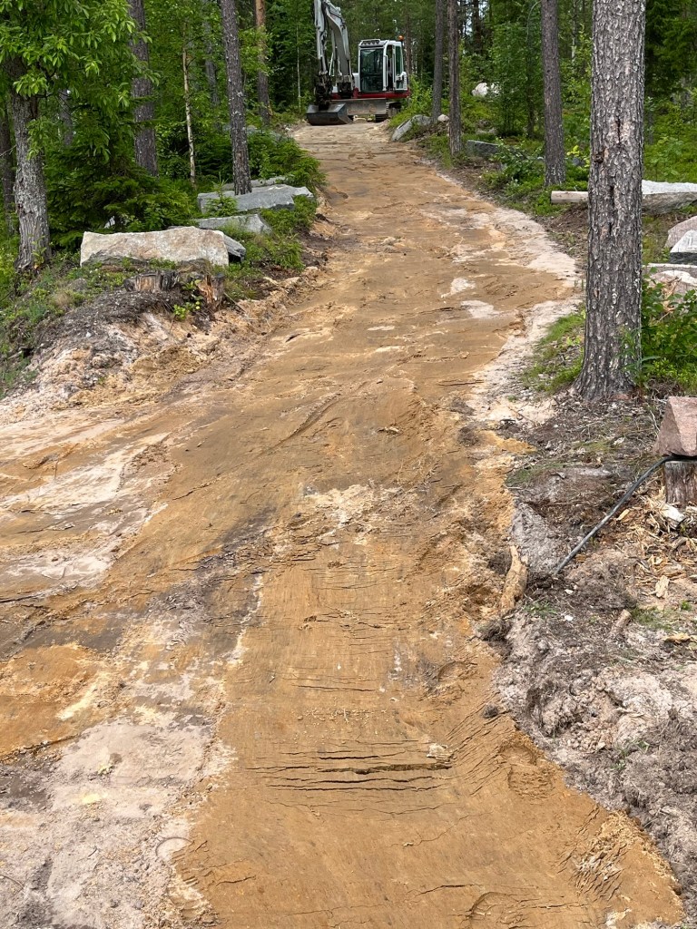 Vi blev glatt överraskade över hur fint materialet var i vägen. Vi trodde det skulle vara enbart sten men det var en hel del sandjord vilket gjorde att grävningen gick över förväntan. Vi var inställda på att vi enbart skulle få ner kablar/rör ett par decimeter och därefter tvingas fylla på material upp till 30 centimeter. Men vi kunde utan större problem gräva ner till ca 60 centimeter vilket innebar att den andra fasen underlättades rejält.