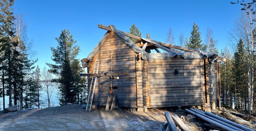 Det återstår en del arbete före bygget sätts i vintervila men den 27/9 2023 är det datum timmerstommen var monterad ute på Lappvikudden!✅