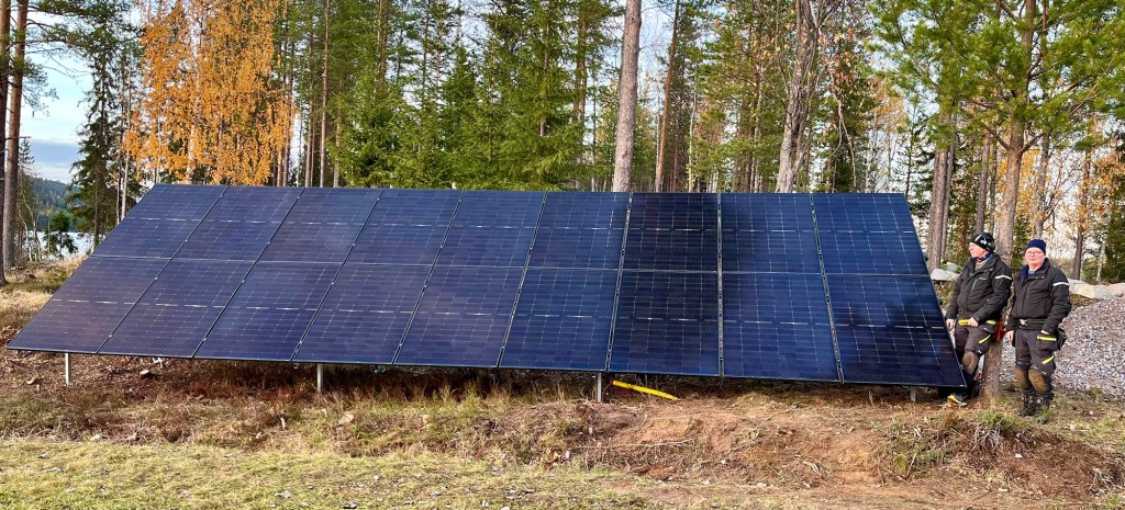 Jag passar även på att göra en solpanelsanläggning för att minska elkostnaderna och bidra till den gröna omställningen. Vi har monterat markbaserade solpaneler i perfekt sydläge i kanten av åkern.
