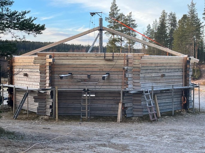 Älgjakten pågår nu för fullt så det blir lite mindre tid att jobba med timringen.