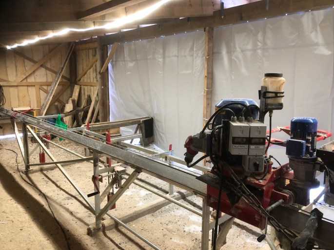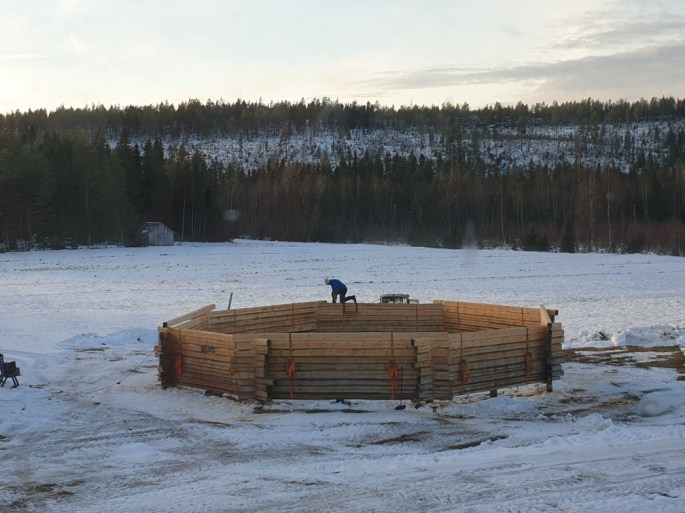 Jag har tillverkat och lyft in 4 åsar i timringen. Nu återstår att fundera ut hur jag ska kunna lyfta upp åsarna på ringen för att kunna fästa dem. Jag tar nu en paus under några veckor bl.a. för att lösa det problemet…🤔😃
